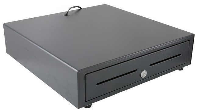 Solidna szuflada w metalowej obudowie. Wyposażona w przewód łączący z kasą o długości 1,4 m zakończony złączem RJ oraz zamek trójpozycyjny (otwarcie szuflady kluczem, otwieranie elektromagnesem, zablokowanie kluczem).