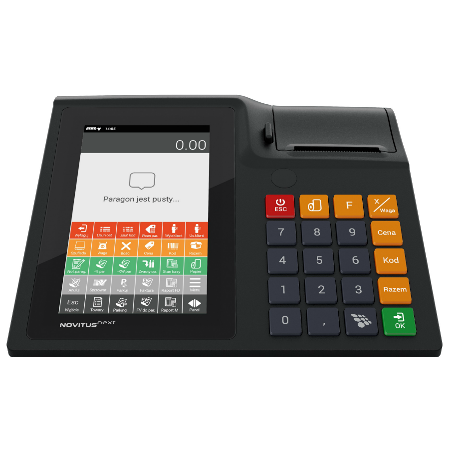 Obsługa kasy nigdy nie była tak prosta i intuicyjna. Chcesz sprzedawać na niej bo wystawianie paragonów sprawia przyjemność. Czuły na dotyk ekran niezwykle ułatwia każdą czynność na kasie NEXT Online. Nie zrezygnowaliśmy też z tradycyjnych rozwiązań! Opcją dla obsługi dotykowej jest doskonała klawiatura fizyczna. Możesz obsługiwać i tak i tak.