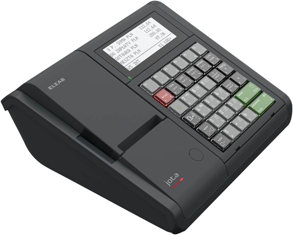 Kasa ELZAB Jota ONLINE to niezawodna kasa fiskalna wyposażona w trwałą klawiaturę mechaniczną oraz 4-liniowy wyświetlacz kasjera. Konstrukcja oparta o sprawdzone, zaawansowane rozwiązania systemowe modelu ELZAB Jota z kopią elektroniczną. Przeznaczona do pracy w sklepach spożywczych, mięsnych, cukierniach, piekarniach, małej gastronomii, szczególnie tam, gdzie możliwa jest praca w sieci LAN/WAN. Posiada podtrzymanie akumulatorowe, może również pracować zasilana z gniazdka zapalniczki samochodowej.